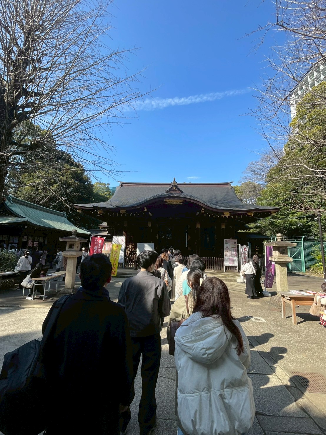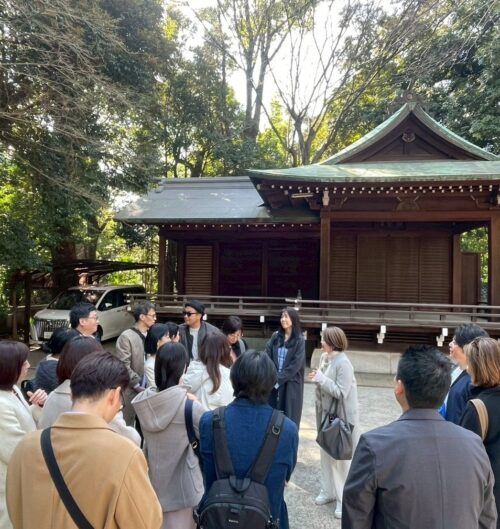 ランチを終えた後は、徒歩でほど近い渋谷氷川神社へ移動。縁結びで知られるこの神社で、参加者全員が各自の願い事を紙に記し、祈祷を受けました。