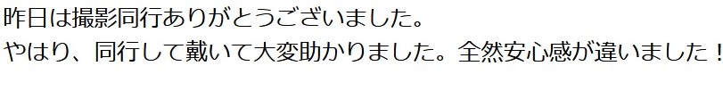 先日、撮影された会員様は、同行してもらって安心だったとのことです。